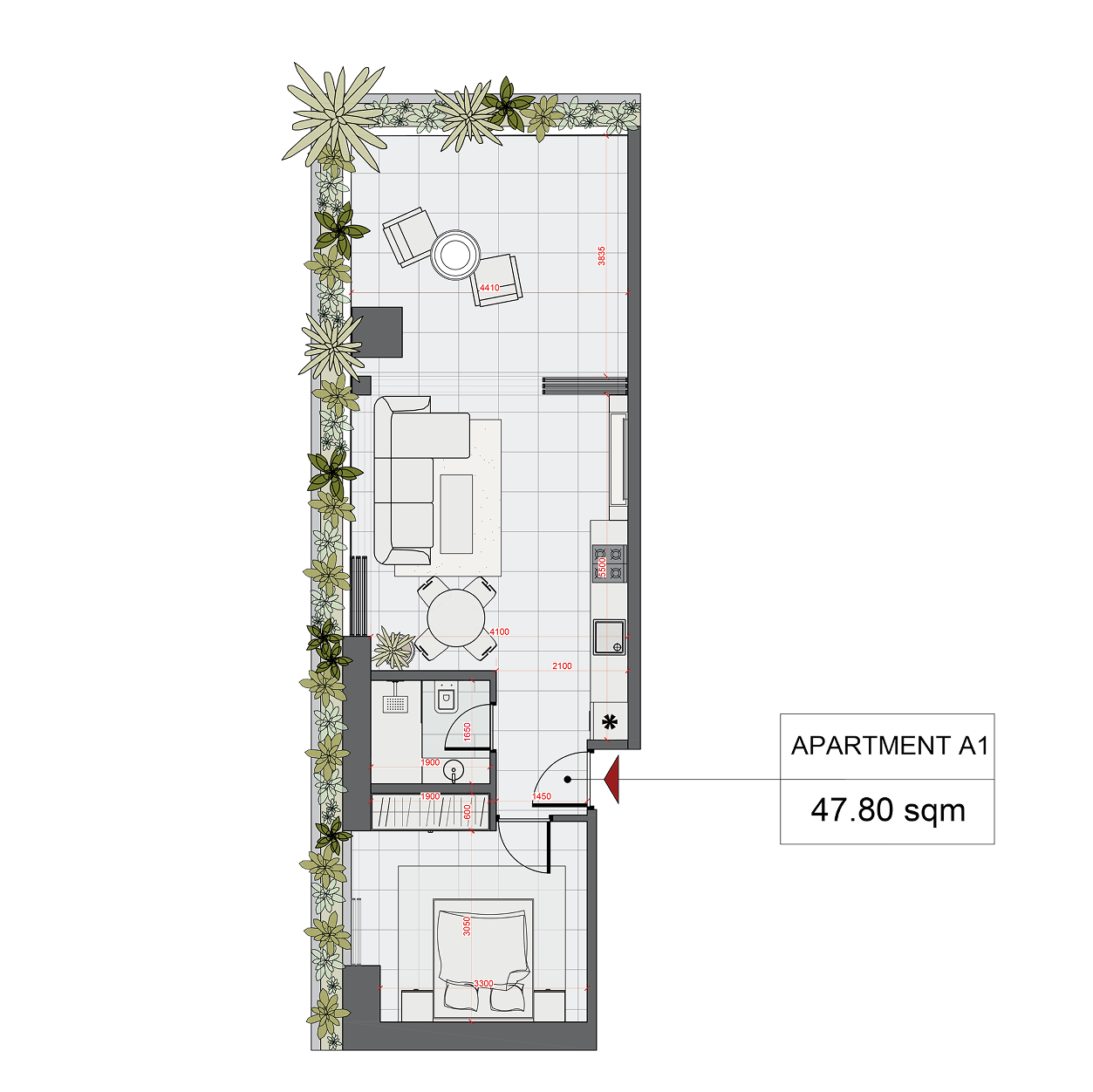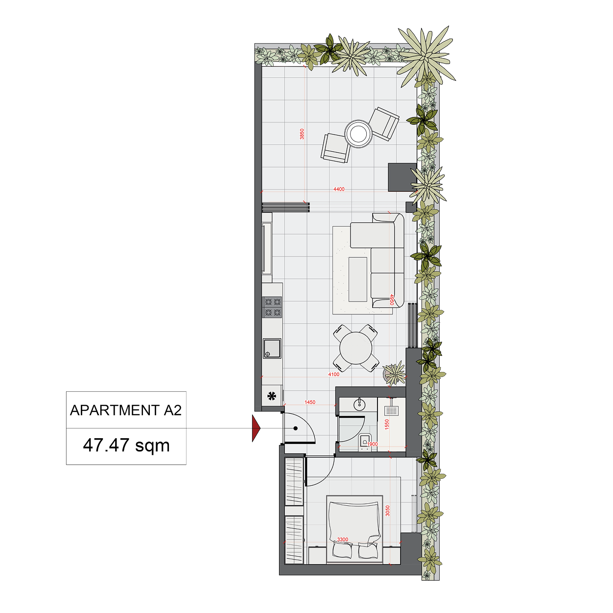 The price per square meter starts from 5000 EUR. We offer apartments ranging 47,5 to 79 square meters, so you can find a space that suits your needs and preferences