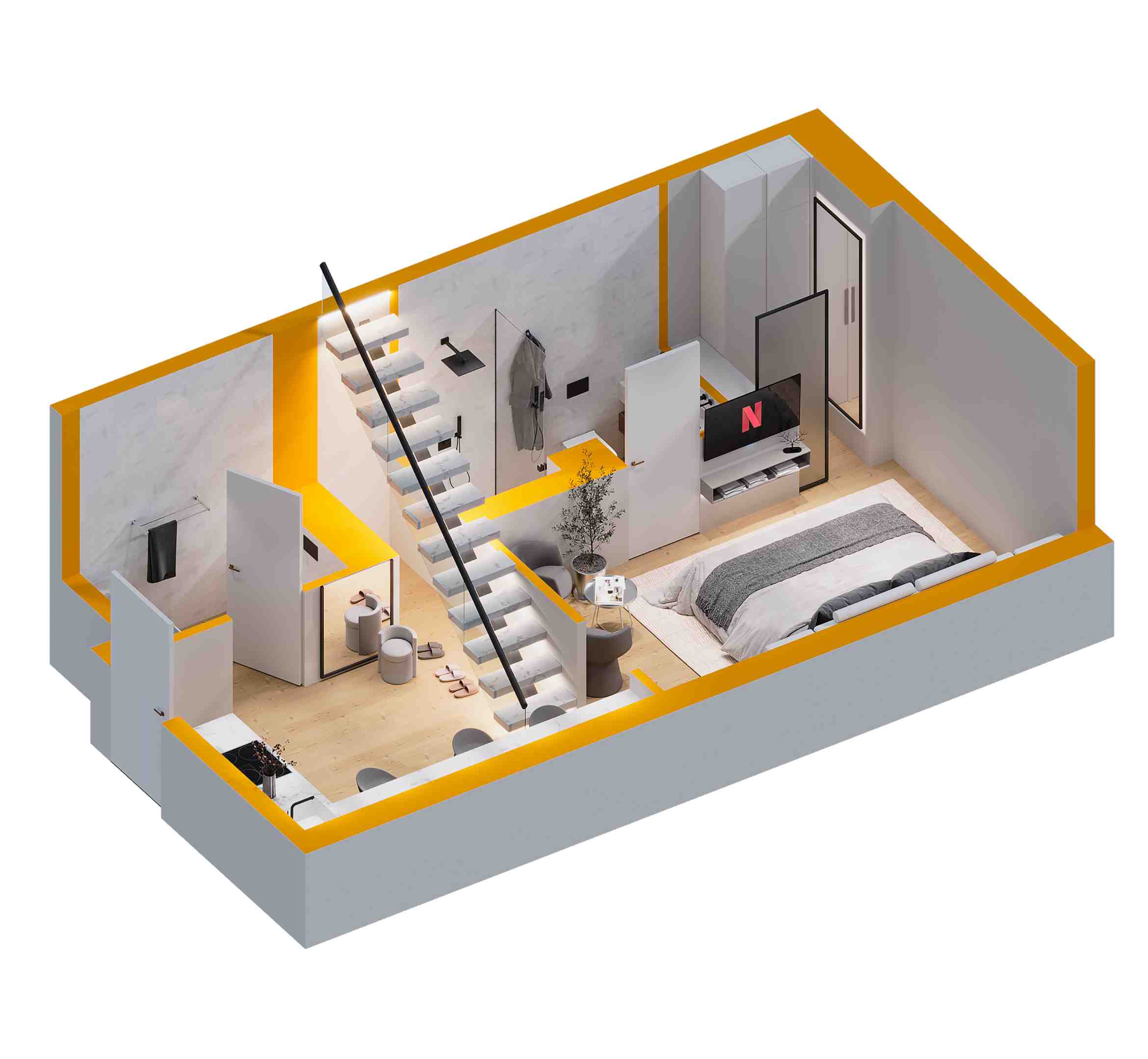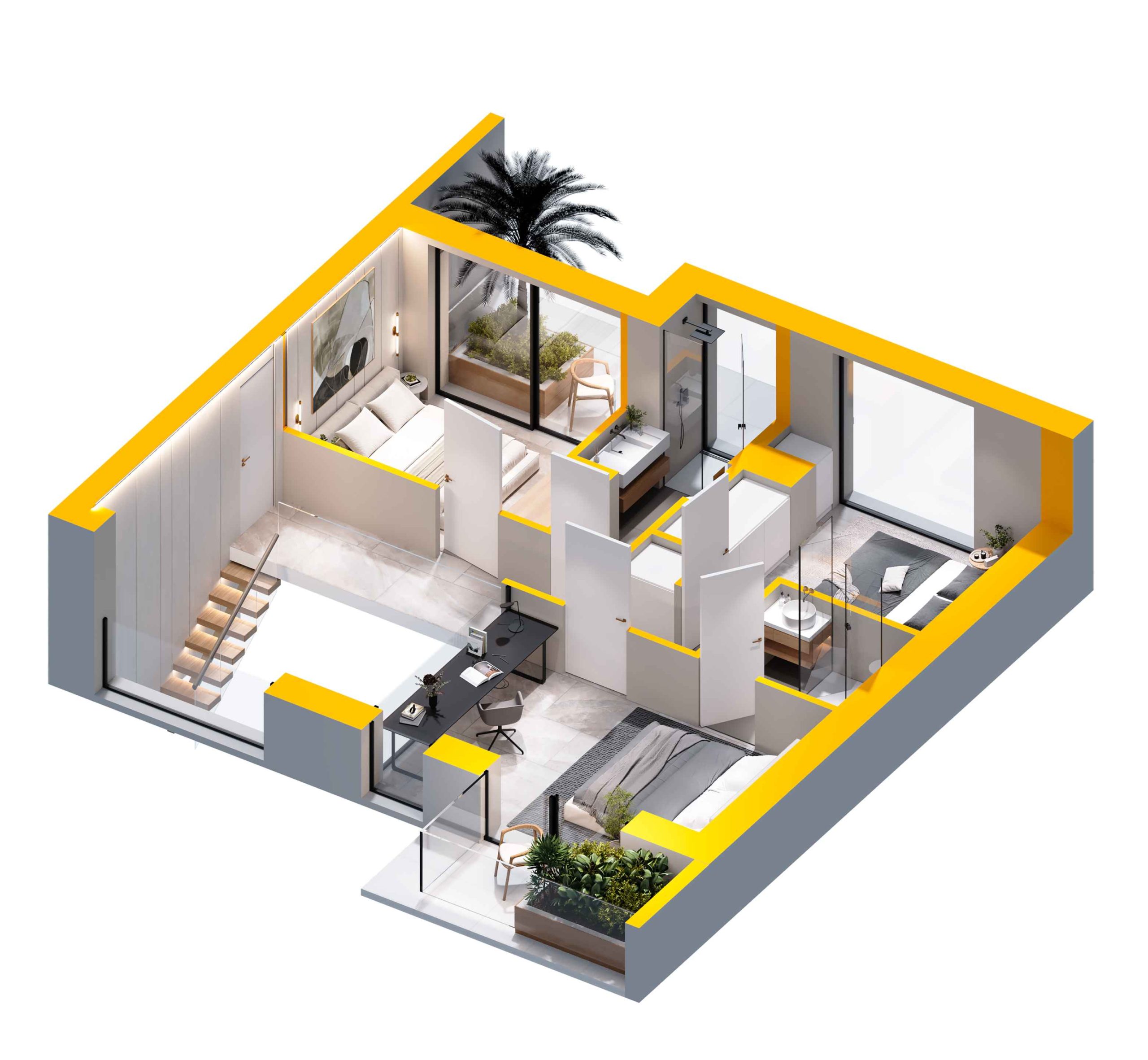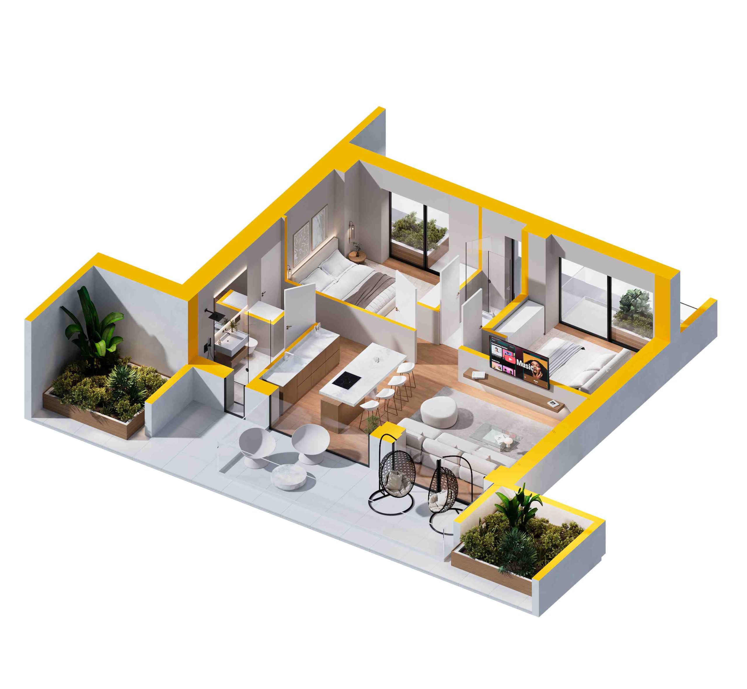 The apartments are delivered fully finished, but customization is possible upon request. All changes will be handled individually, and we will gladly assist you in tailoring the interiors to your preferences
