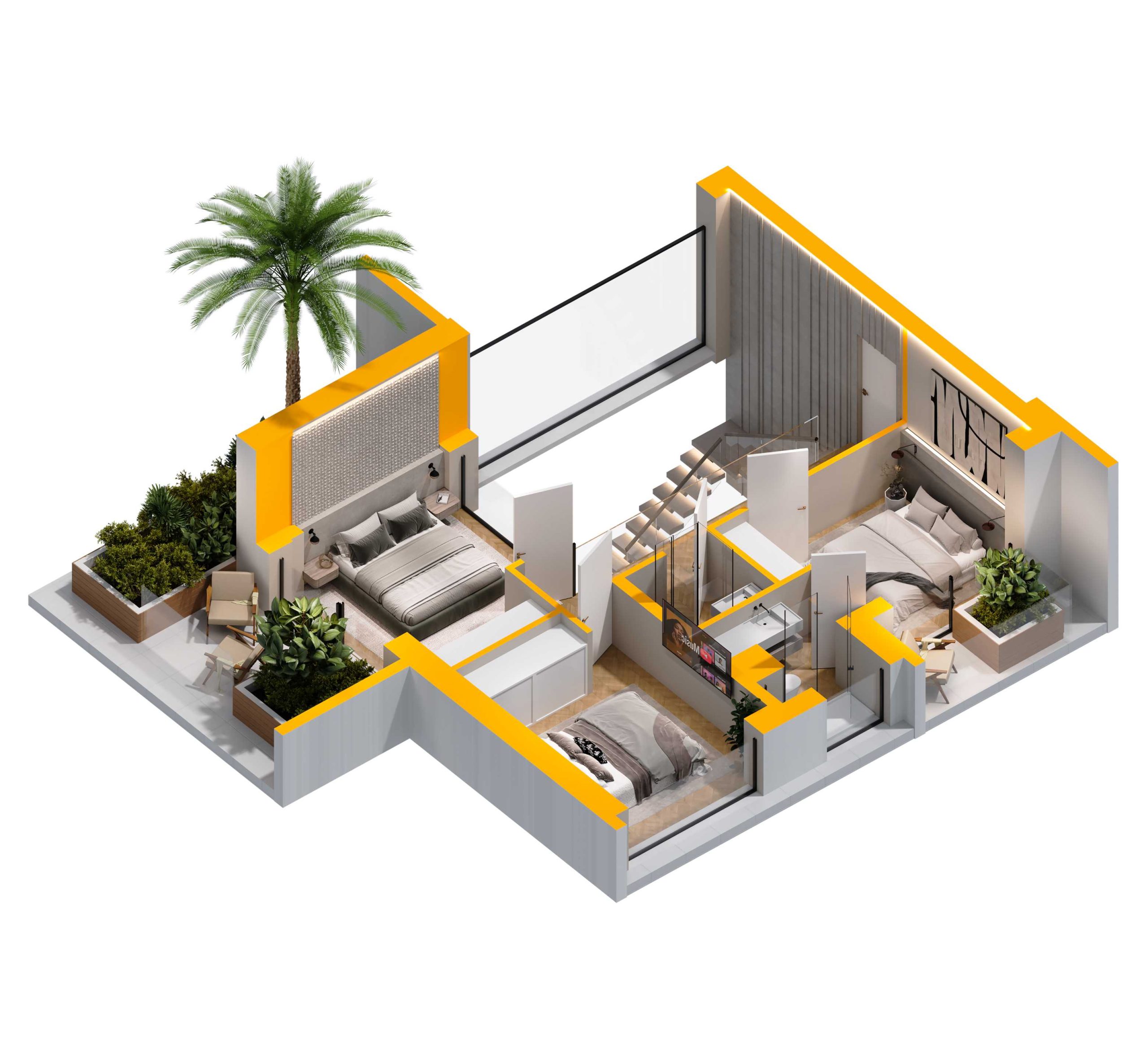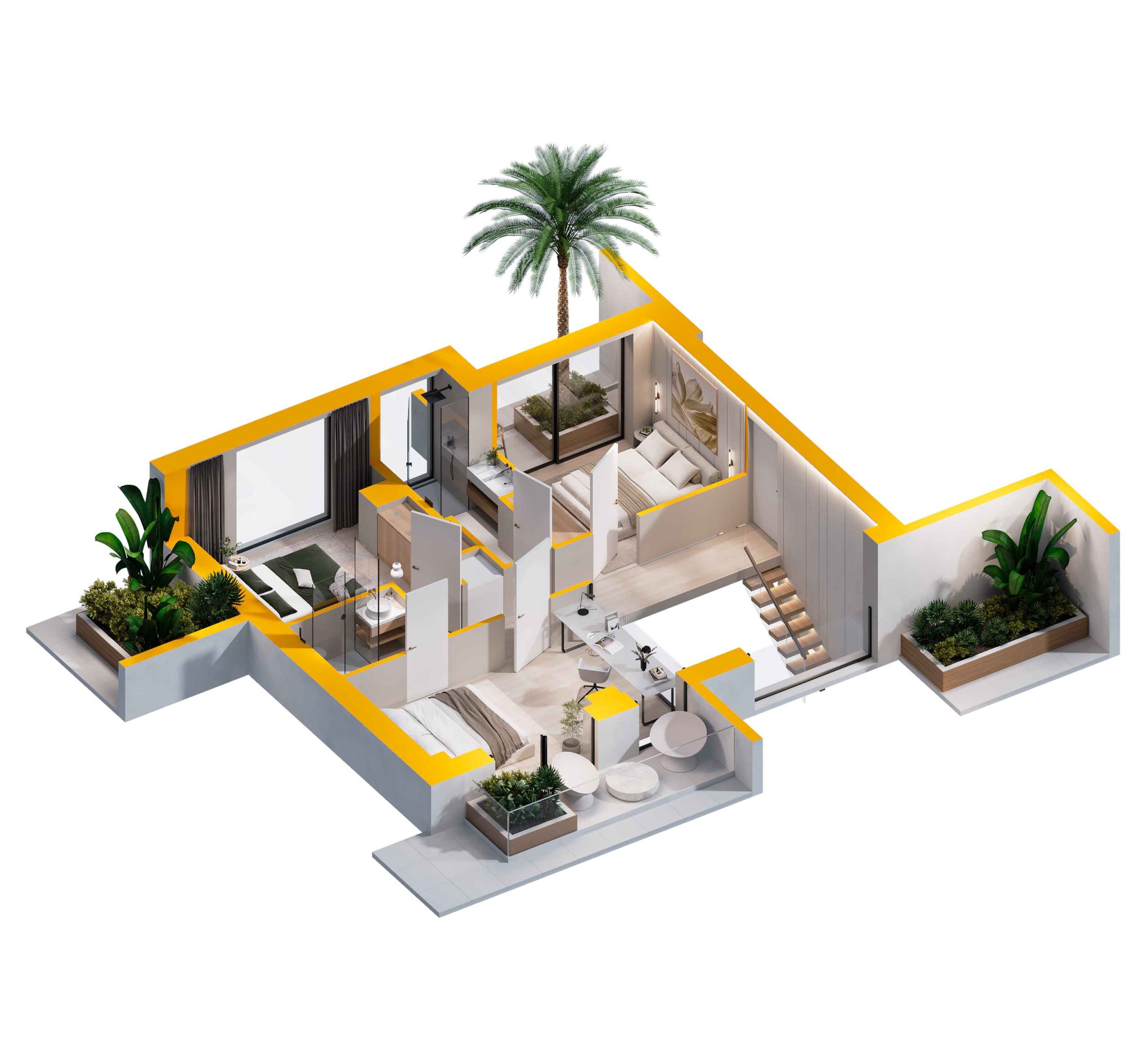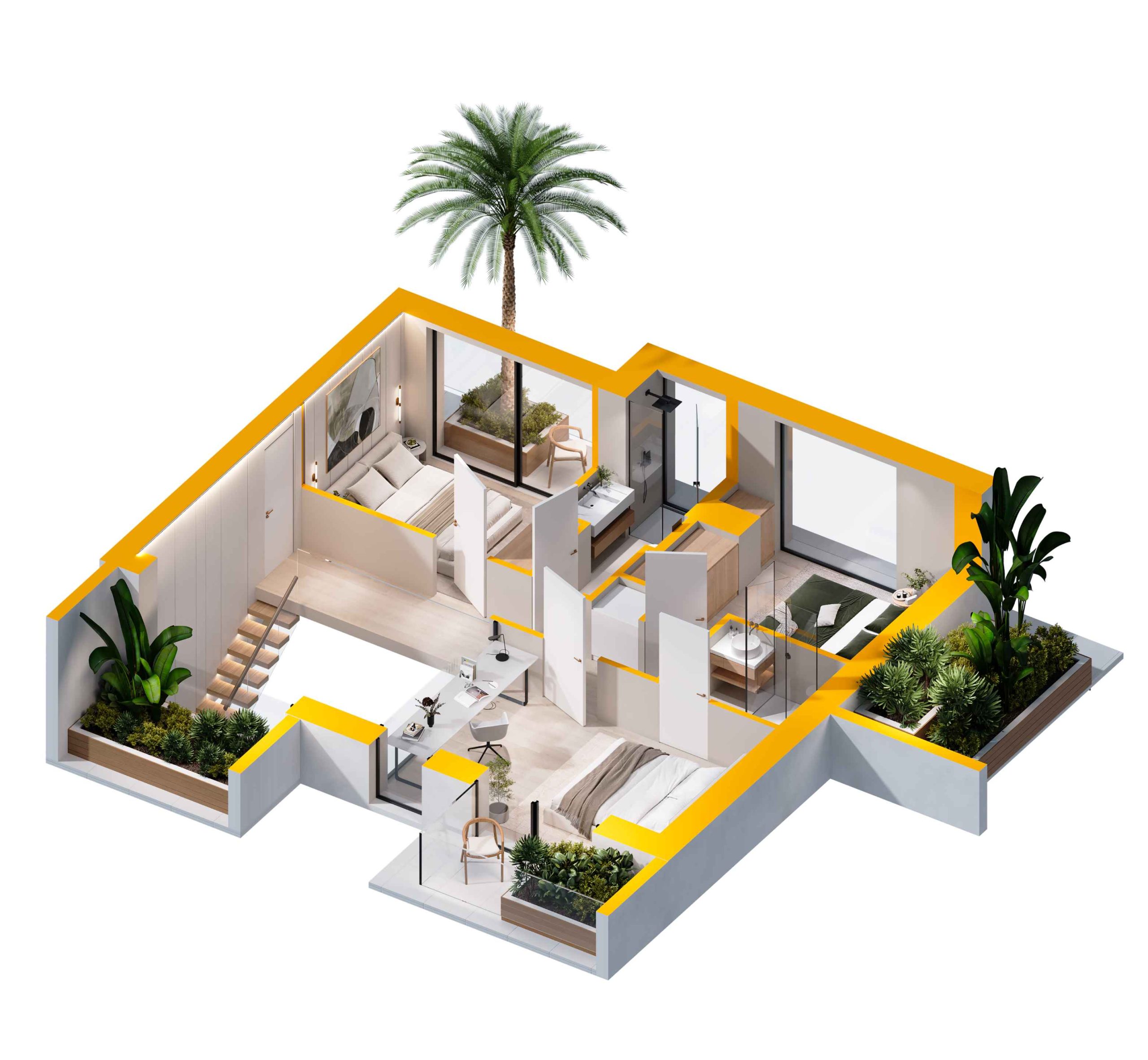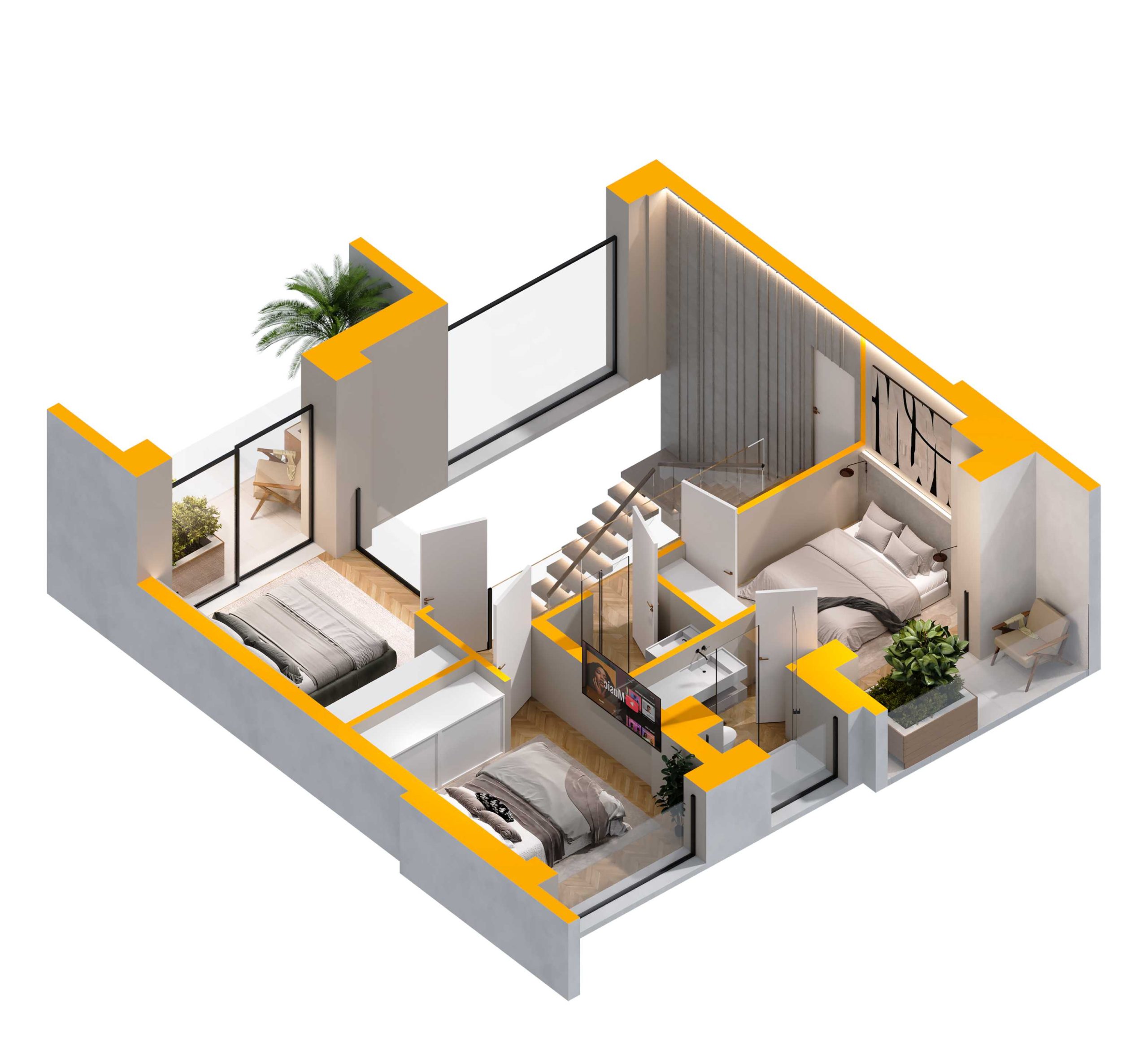 The apartments are delivered fully finished, but customization is possible upon request. All changes will be handled individually, and we will gladly assist you in tailoring the interiors to your preferences