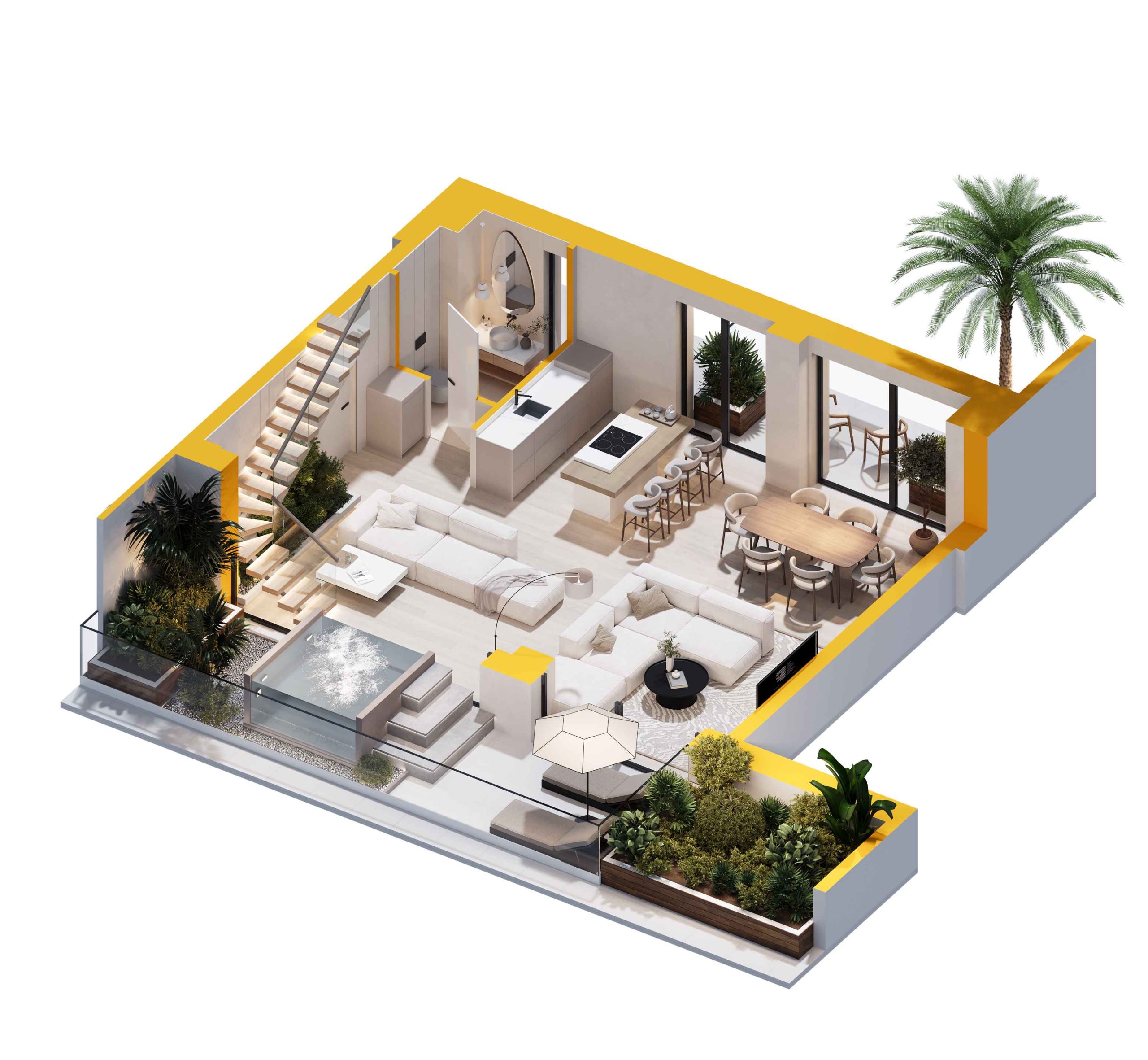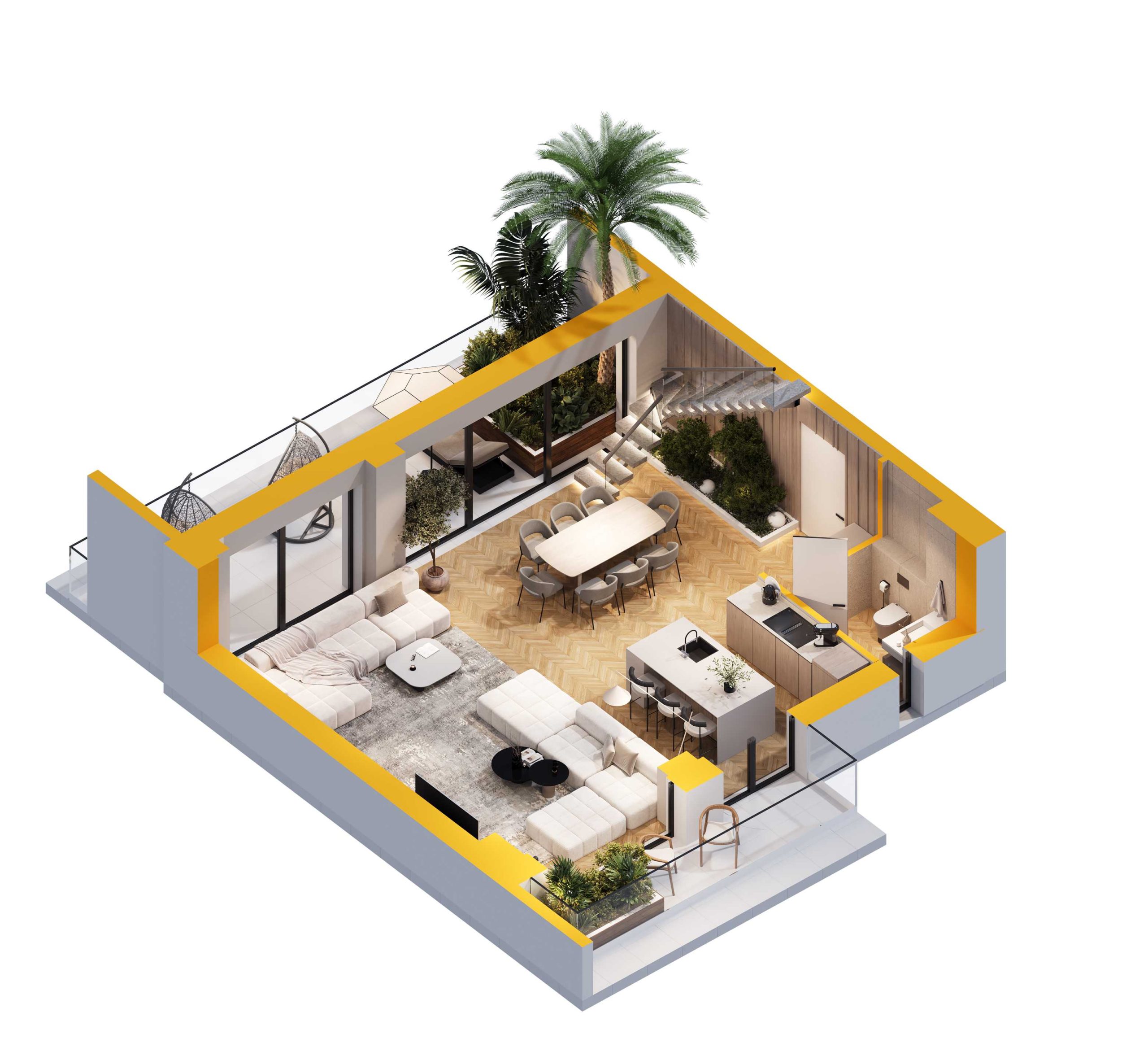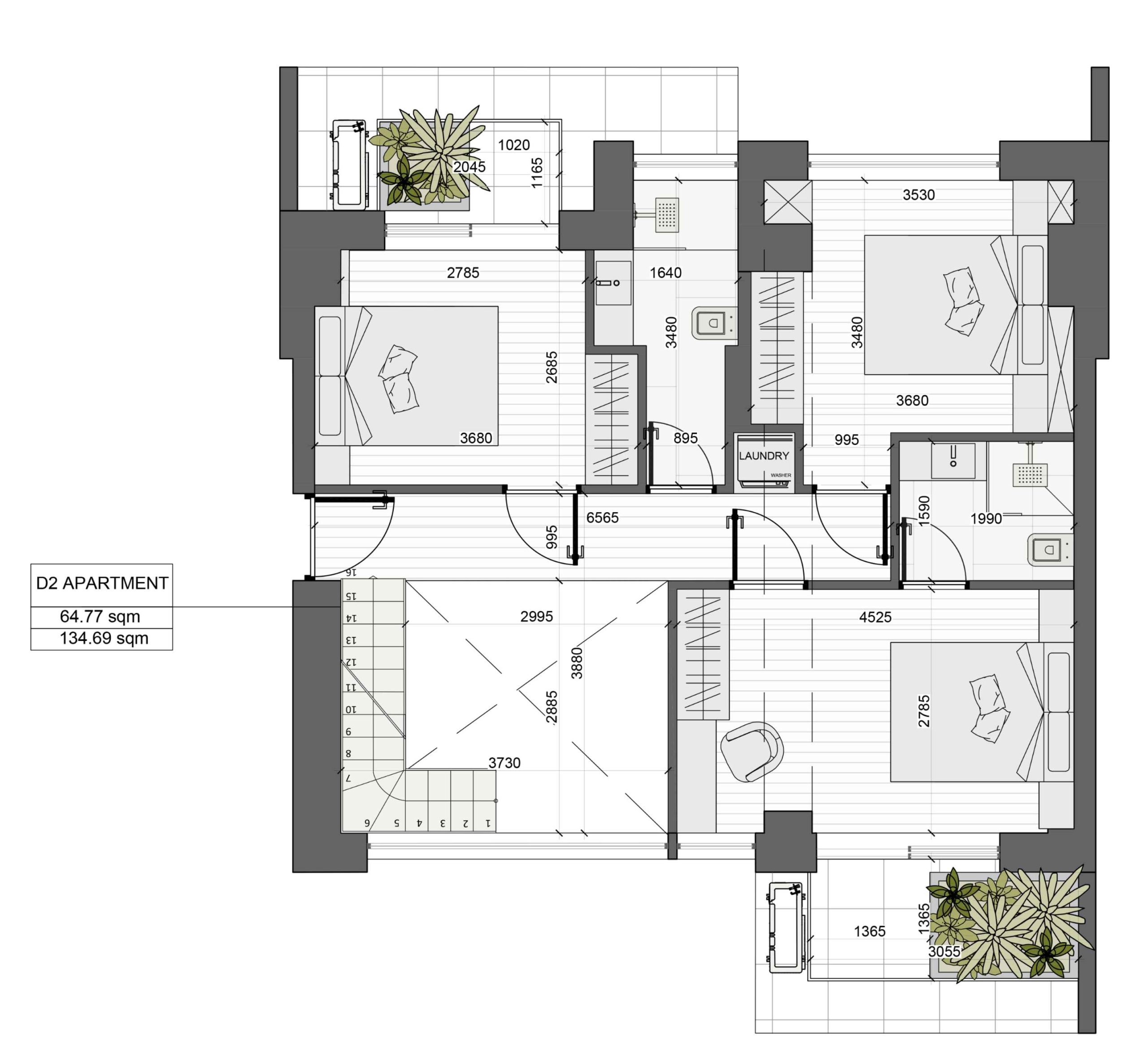 - Large terraces 27,5 sq.m.