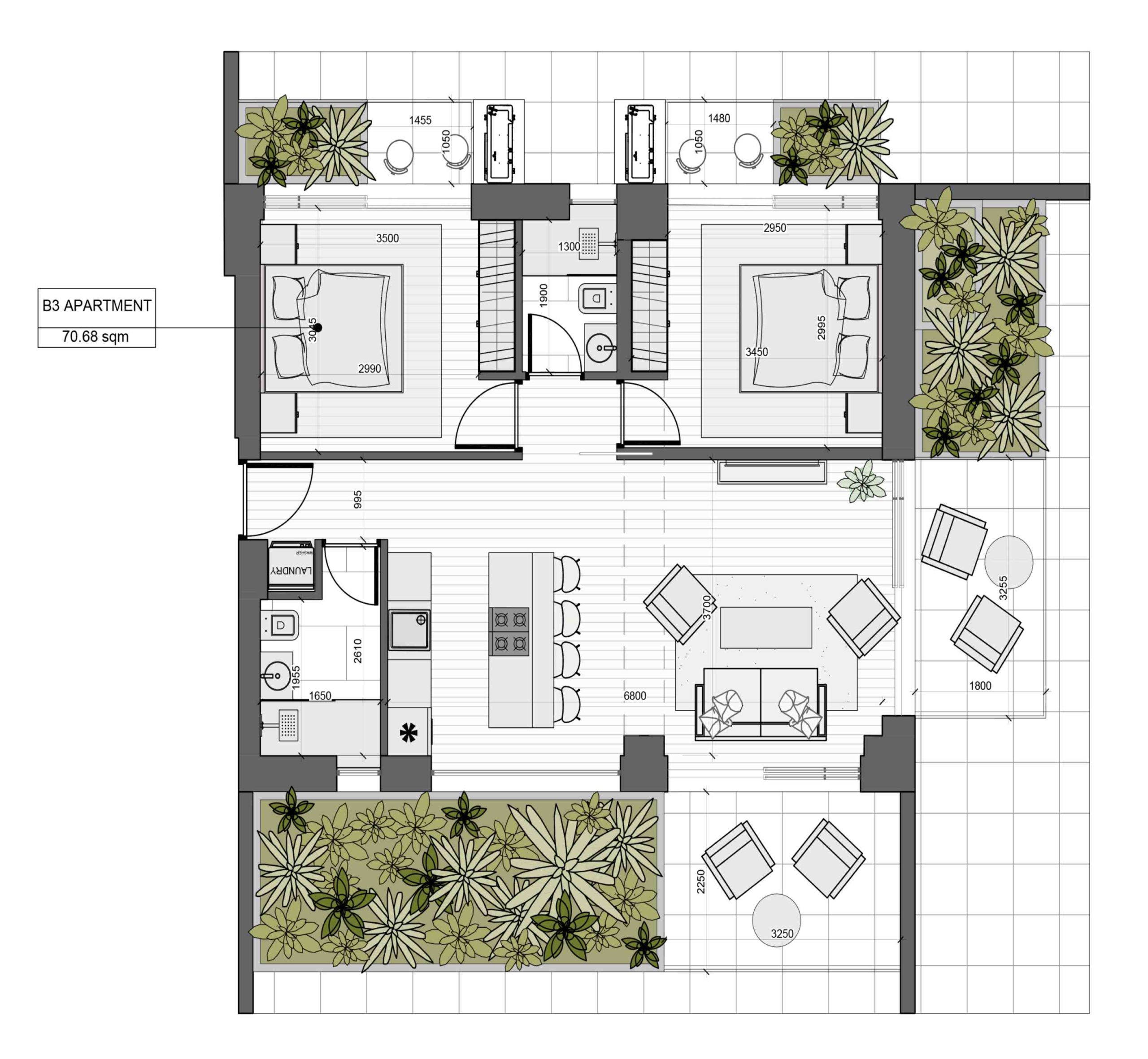 - Large terraces 18 sq.m.