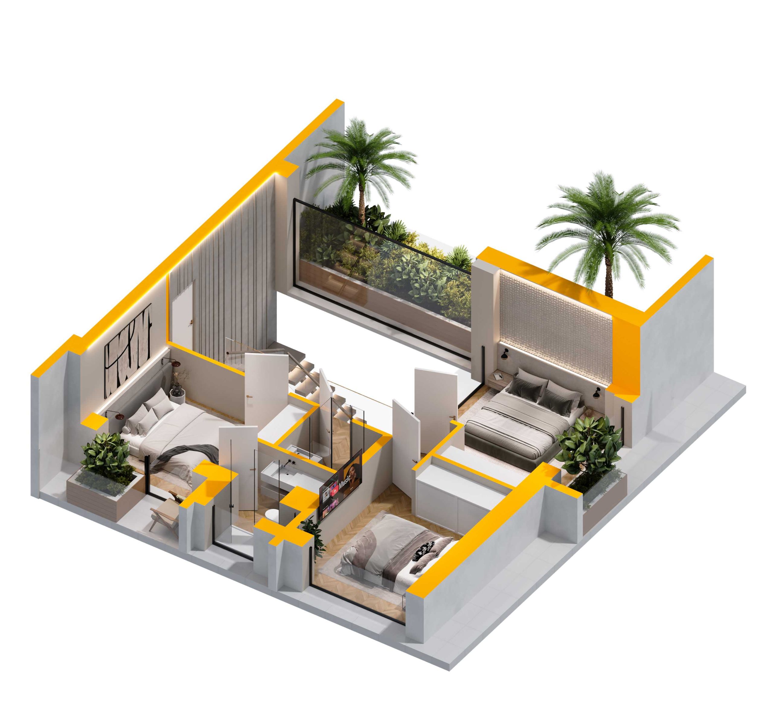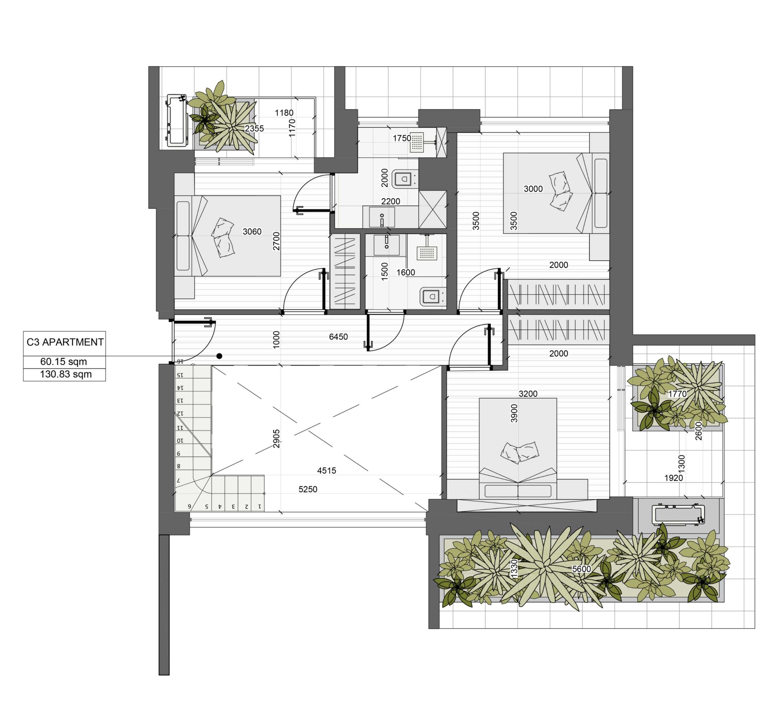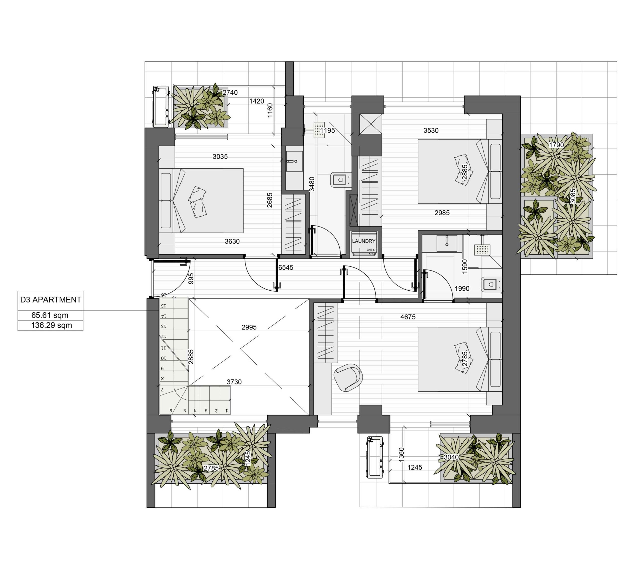 - 3 bedrooms