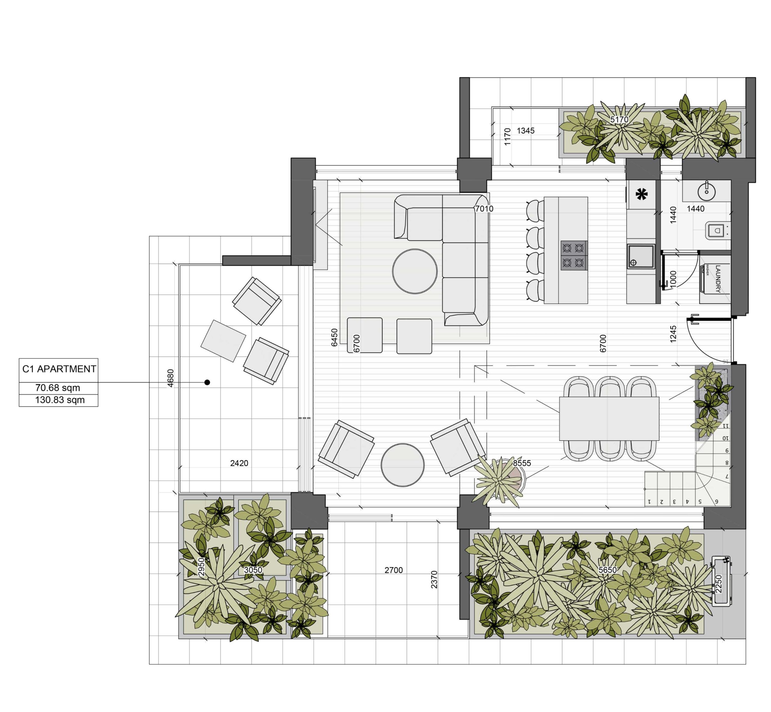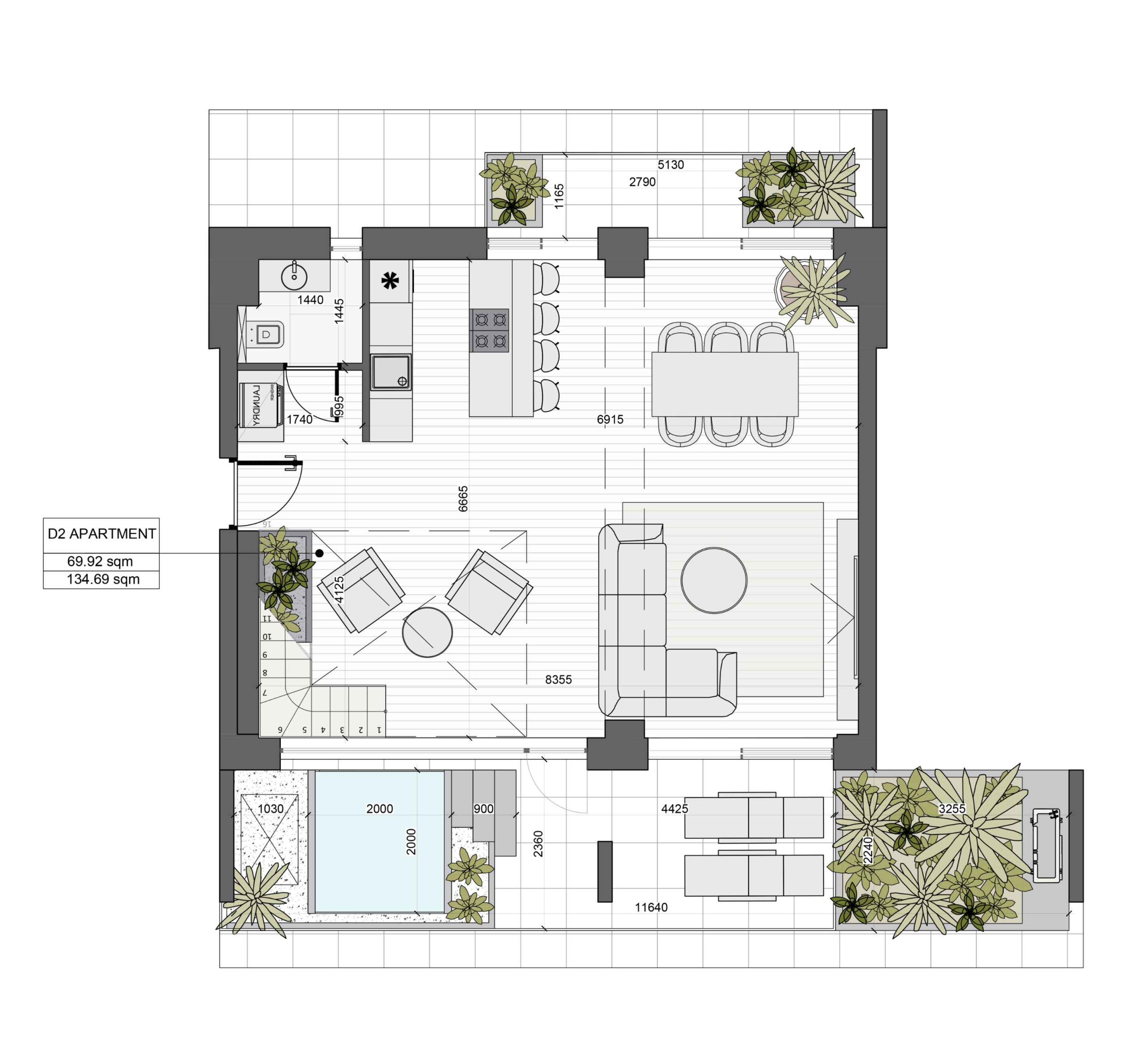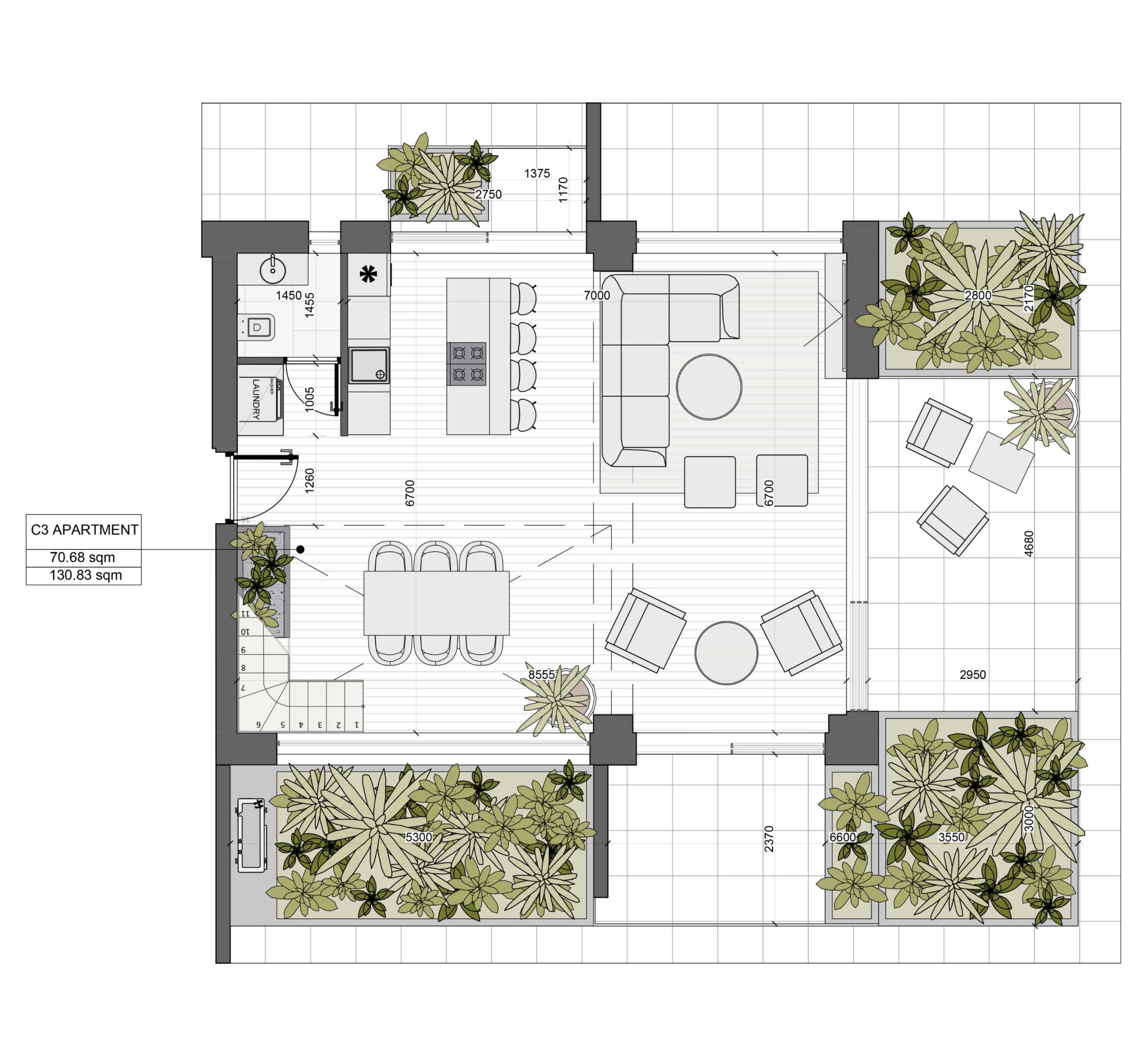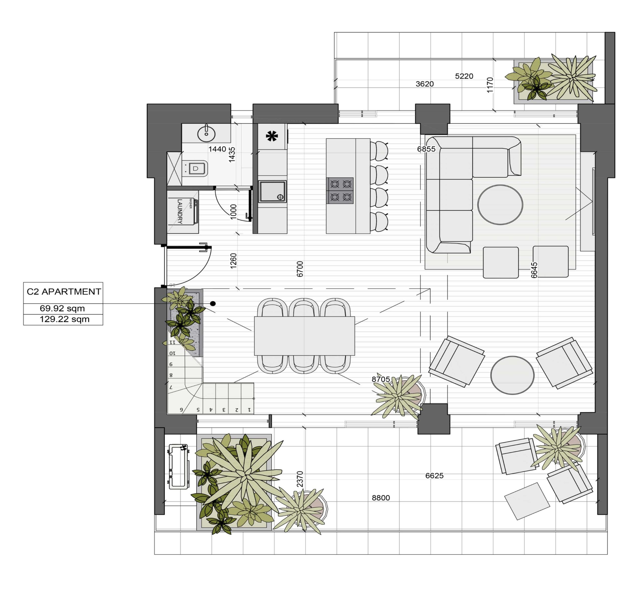 The price per square meter starts from 5,500 EUR. We offer apartments ranging from 70 to 136 square meters, so you can find a space that suits your needs and preferences