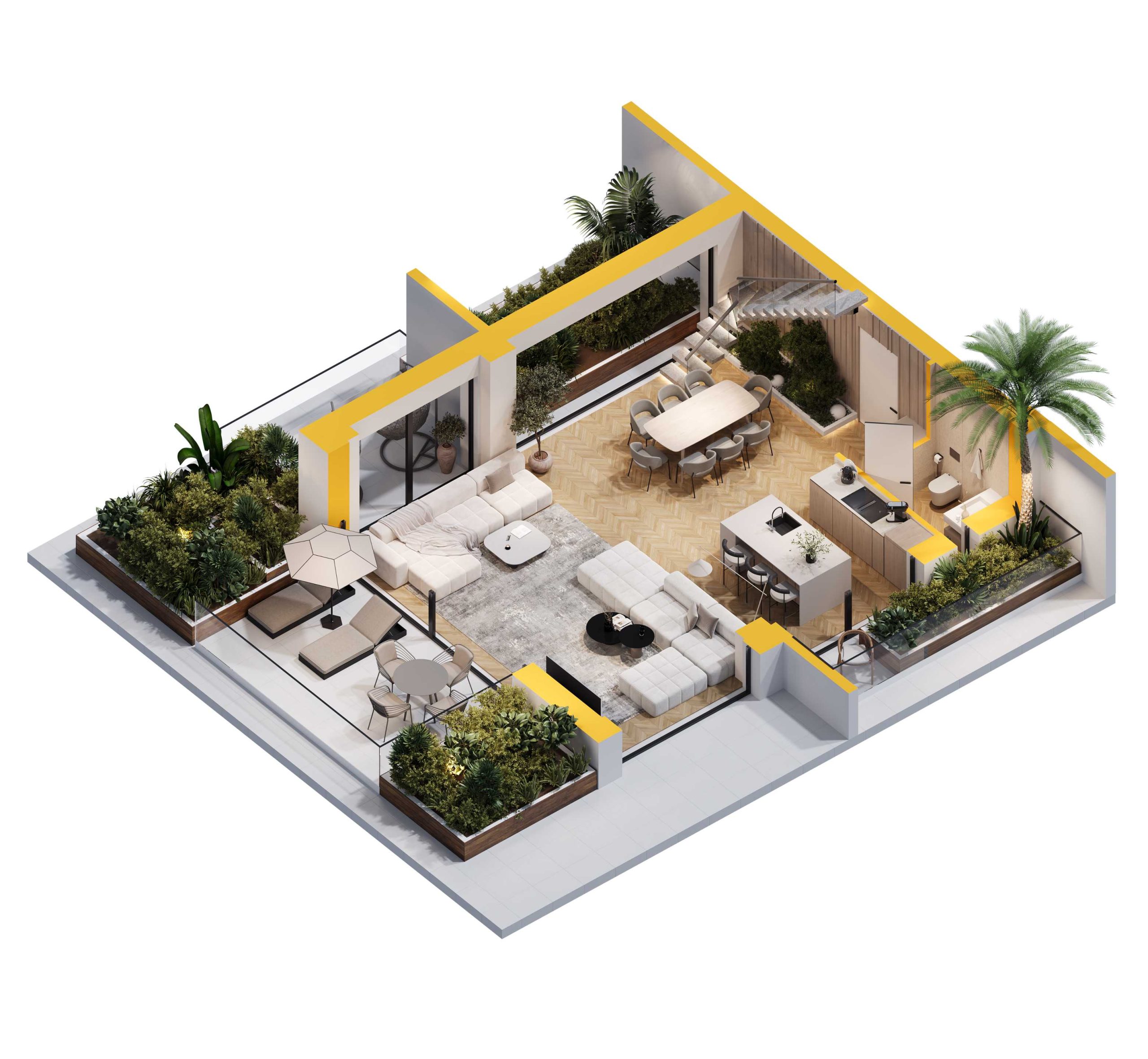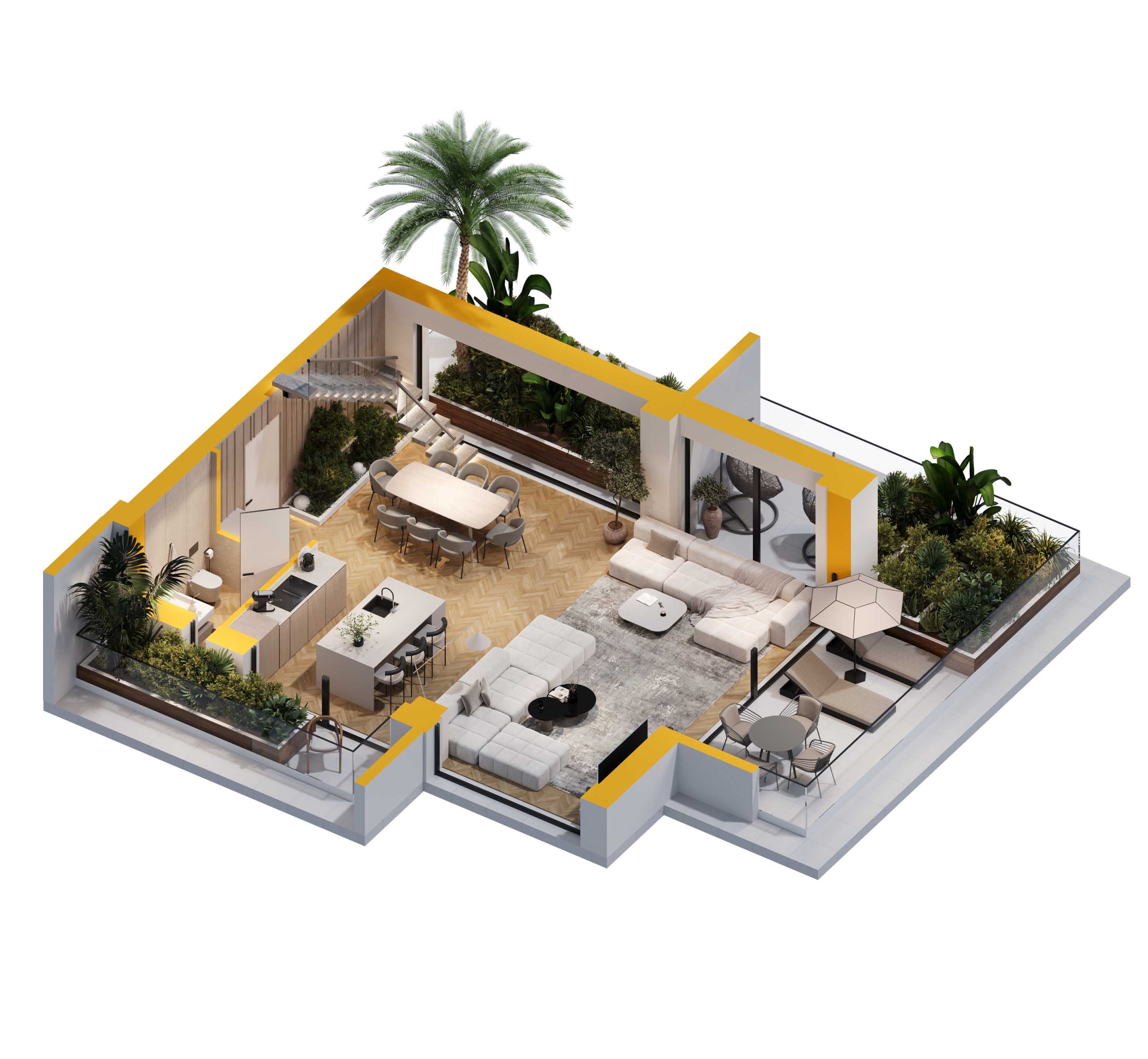 - Large terraces 37 sq.m.